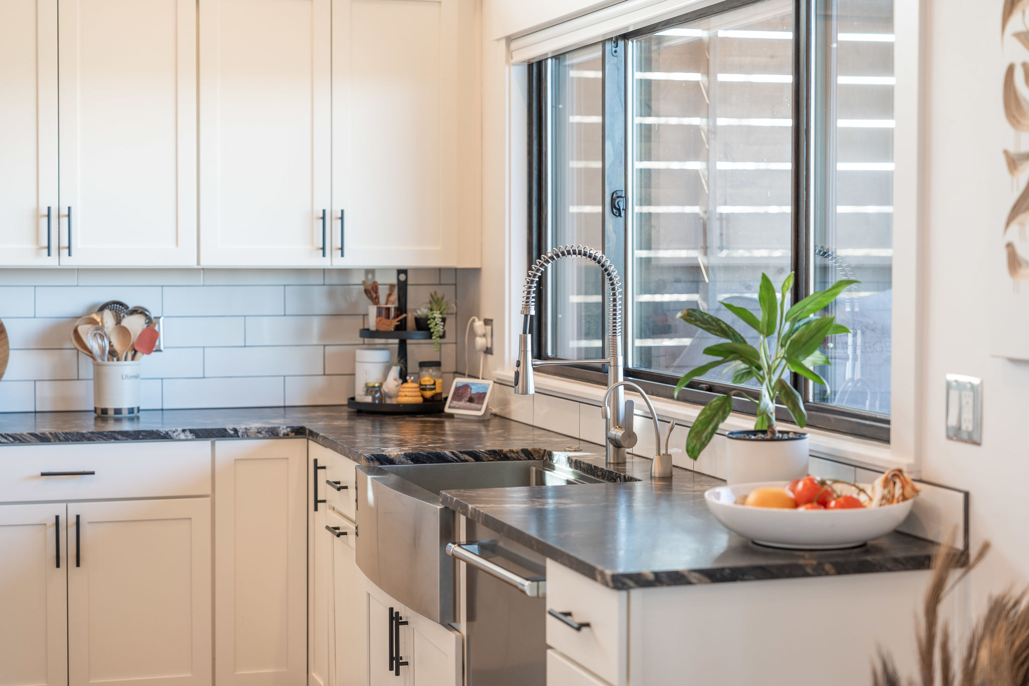 The primary suite is a private retreat with two walk-in closets, a spa-like bath, and direct deck access. Two additional en-suite bedrooms provide privacy for guests, along with a dedicated office with mountain views.